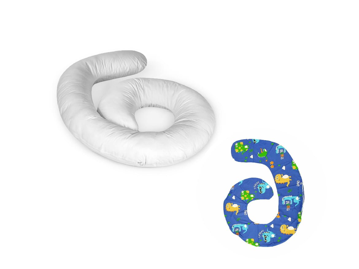📣 PACHET PROMO: Perna pentru gravide Mami, model Alb + HUSA aditionala pentru Perna, model Dinozauri