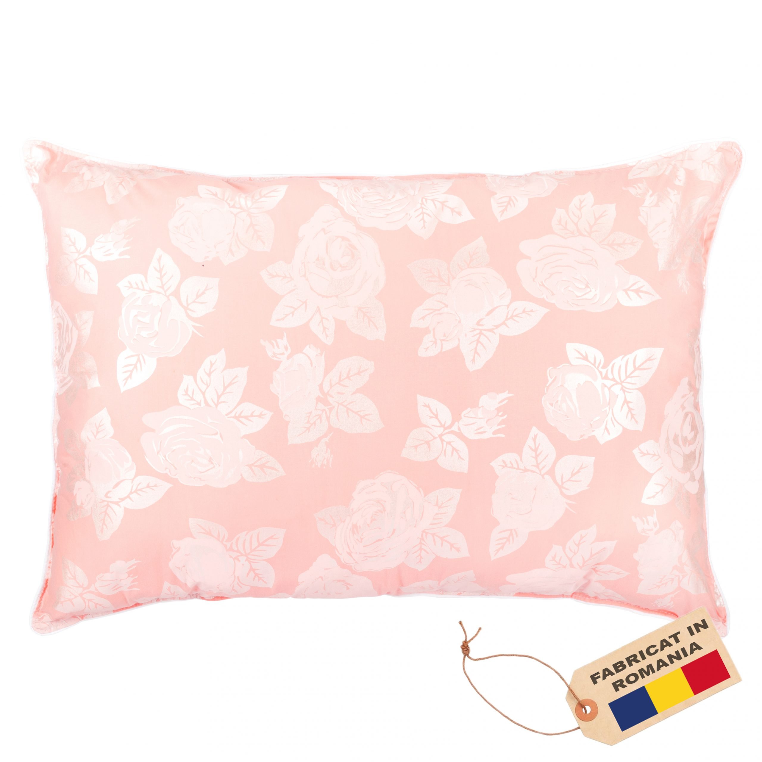 Perna SOMNART, 50×70 cm, umplutura pene 90%, puf 10%, bumbac 100%, model floral roz