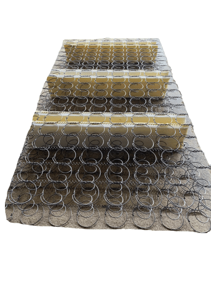 - Placi de confort din spuma poliuretanica HR 21 kg/mc grosime 15 mm, matlasaj din stofa saltele tip Jacquard poliester, vatelina neutra dpdv termic 150 gr/mp, TNT